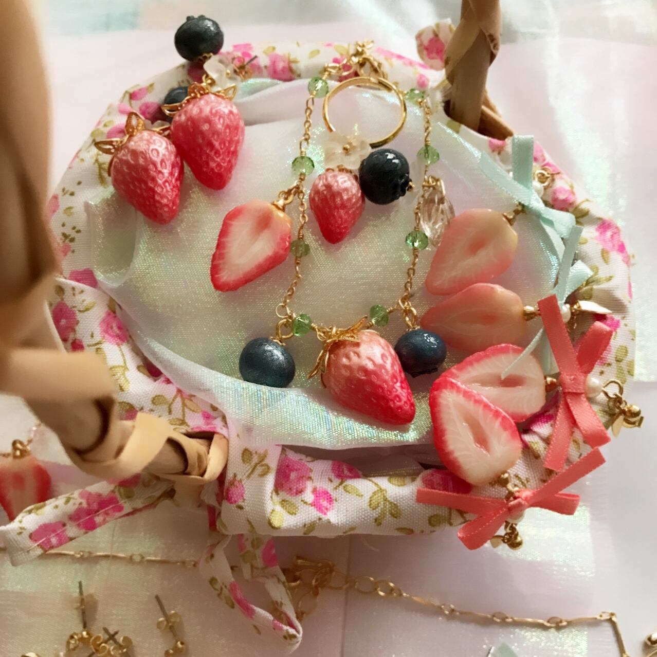 パール加工を施した小さないちごとブルーベリー