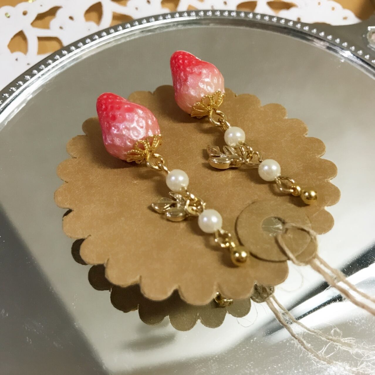 繊細なリーフ型のメタルビーズをつけたピアスです。