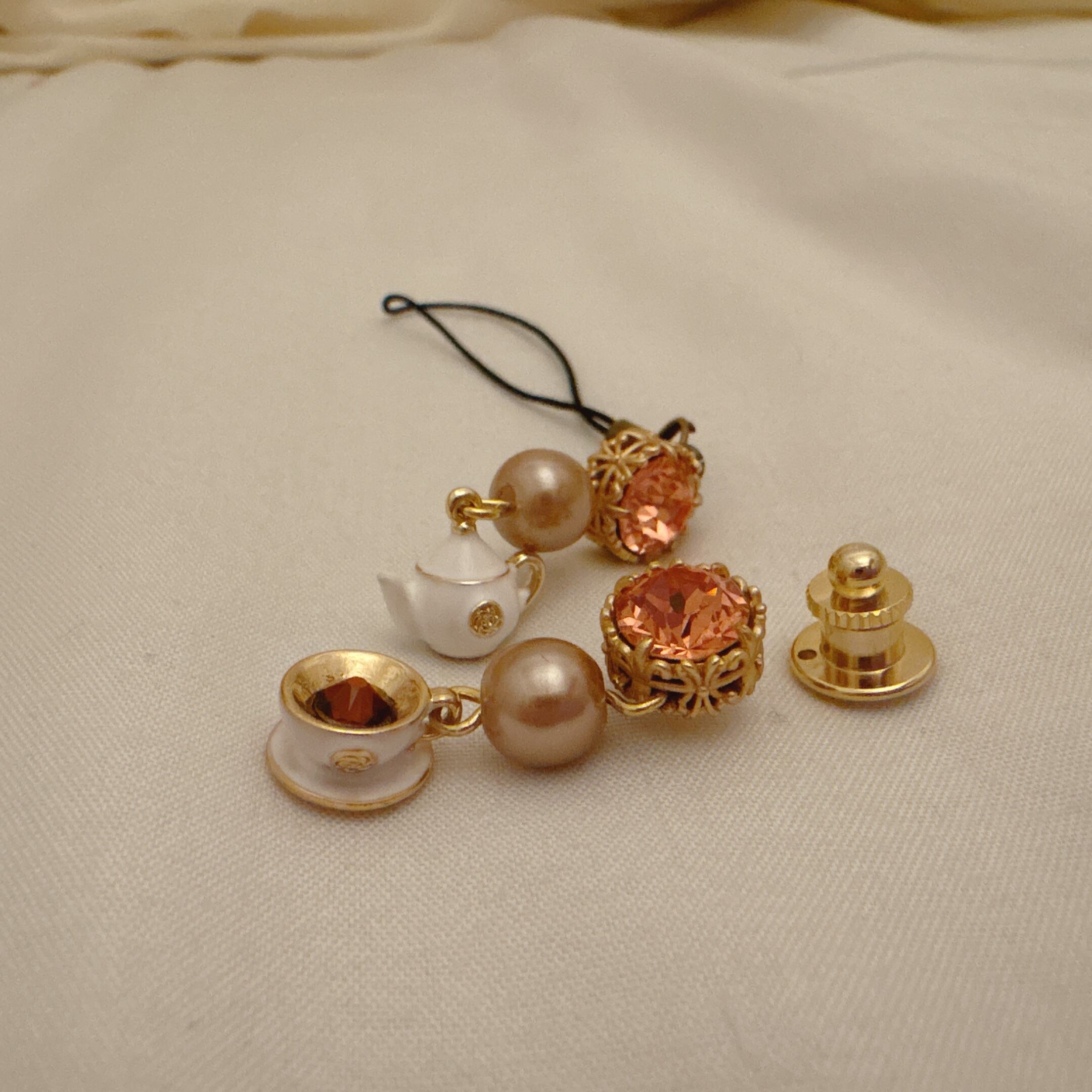 ゴールドに白いエナメルを纏ったティーカップチャームに